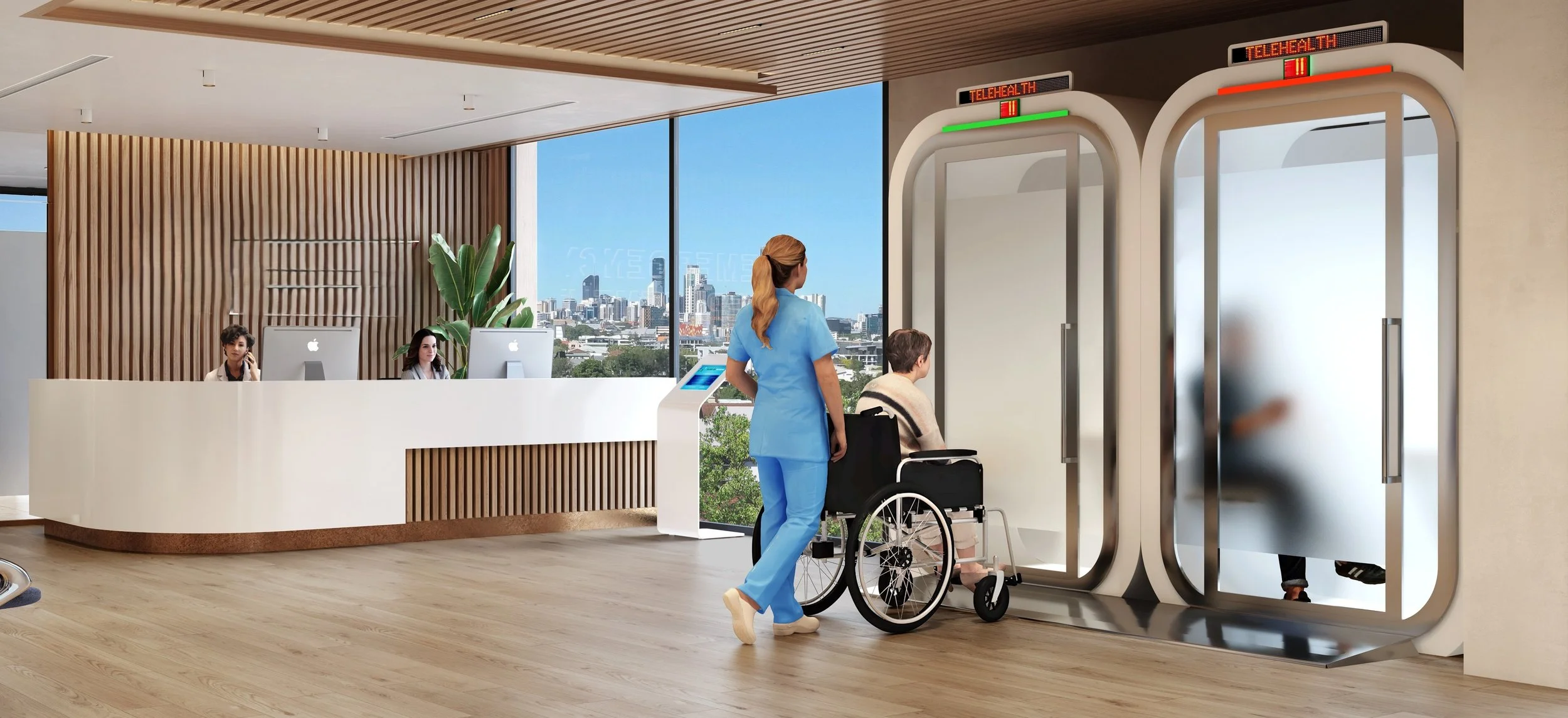 CareZen Virtual Care Pods integrate into your waiting room environment to connect your community to the virtual service that they are unable to access, reducing their wait times to access care.